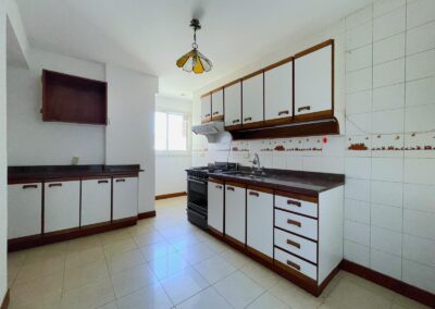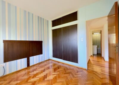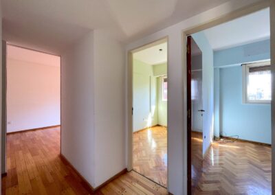 La unidad consta de un ingreso a un pequeño hall de recepción, conectado al amplio living comedor, con salida a balcón corrido a la calle, de orientacion oeste, lo que le da mucho sol de tarde. Cuenta con tres dormitorios de compactas dimensiones, todos con placards y muy buena luz natural. Posee cocina completa, con muebles alacenas y bajomesadas, lavadero independiente y espacio para comedor diario. Baño completo, con ventana al exterior, y toilette de recepción. Servicios individuales (agua caliente a traves de calefón y calefacción por tiro balanceado). Pisos de madera entarugados.